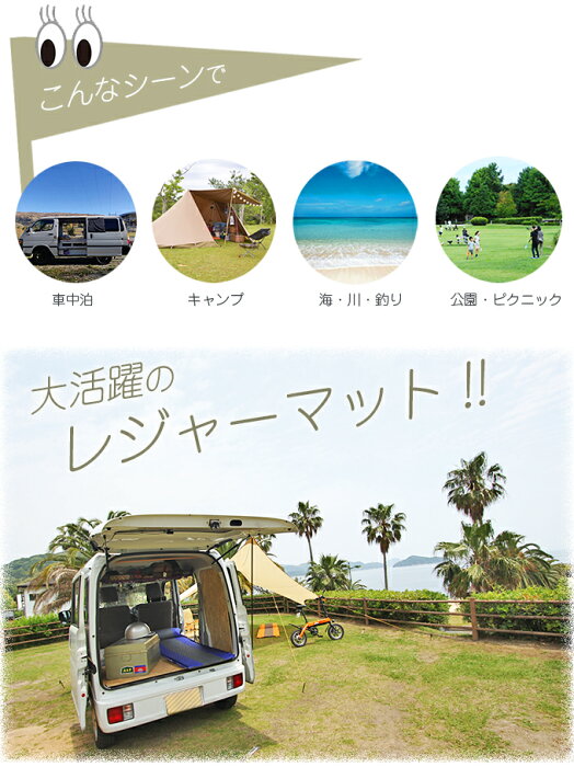 ★割引クーポン配布中★自動膨張 厚み3mm【車中泊マット/レジャーマット2個セット 選べる4色】収納袋付き 枕付き 178cm×60cm 連結 車中泊 超軽量 超コンパクト 簡単設置 海 川 山 公園 キャンプ BBQ 家 おうちキャンプ プール ピクニック アウトドア 防災 非常時